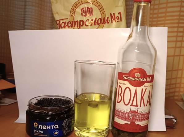 Fig. 2. Pertsovka (pepper vodka) with caviar.